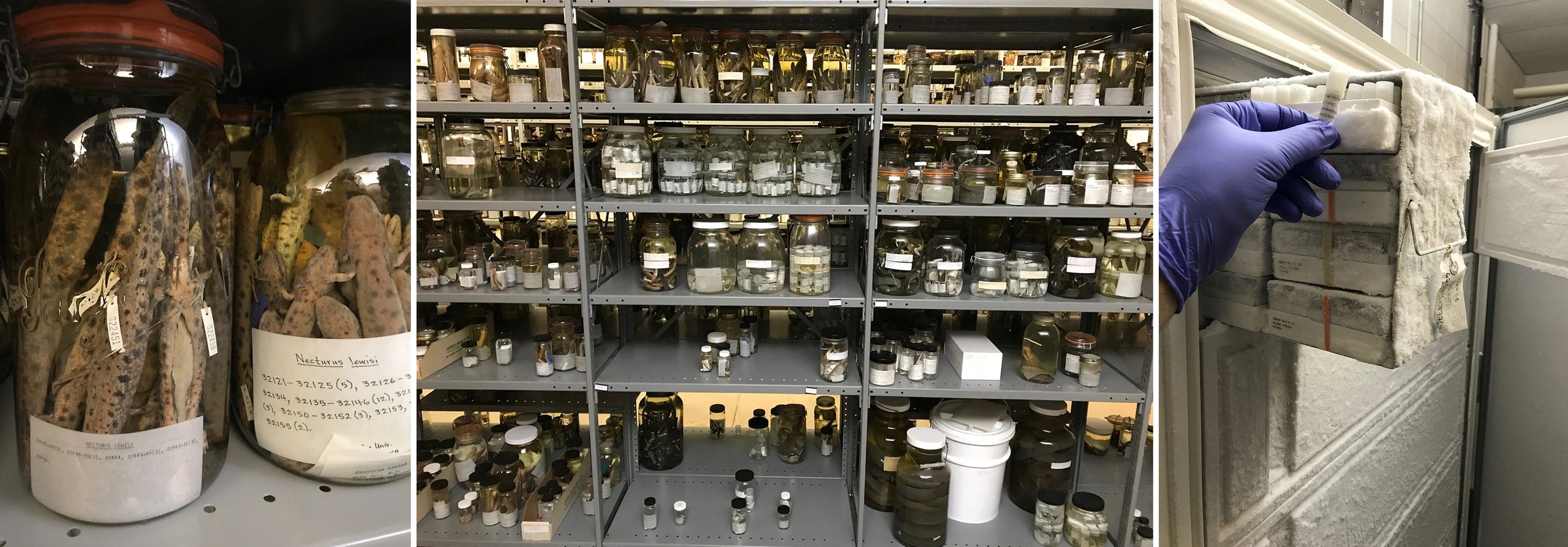 As Curator, I am responsible for the care and use of the Herpetology Research Collections at the North Carolina Museum of Natural Sciences. This invaluable resource, established in the late 1800s, contains approximately 300,000 preserved scientific specimens (>104,000 catalog numbers) and approximately 7,500 vouchered tissues of amphibians and reptiles from around the world. The collection has exceptionally strong holdings from North Carolina (>80% of the collection) and the Southeast U.S., with additionally strong holdings from Southeast Asia, Central Africa and Cuba. The collection is managed by Jeffrey C. Beane.